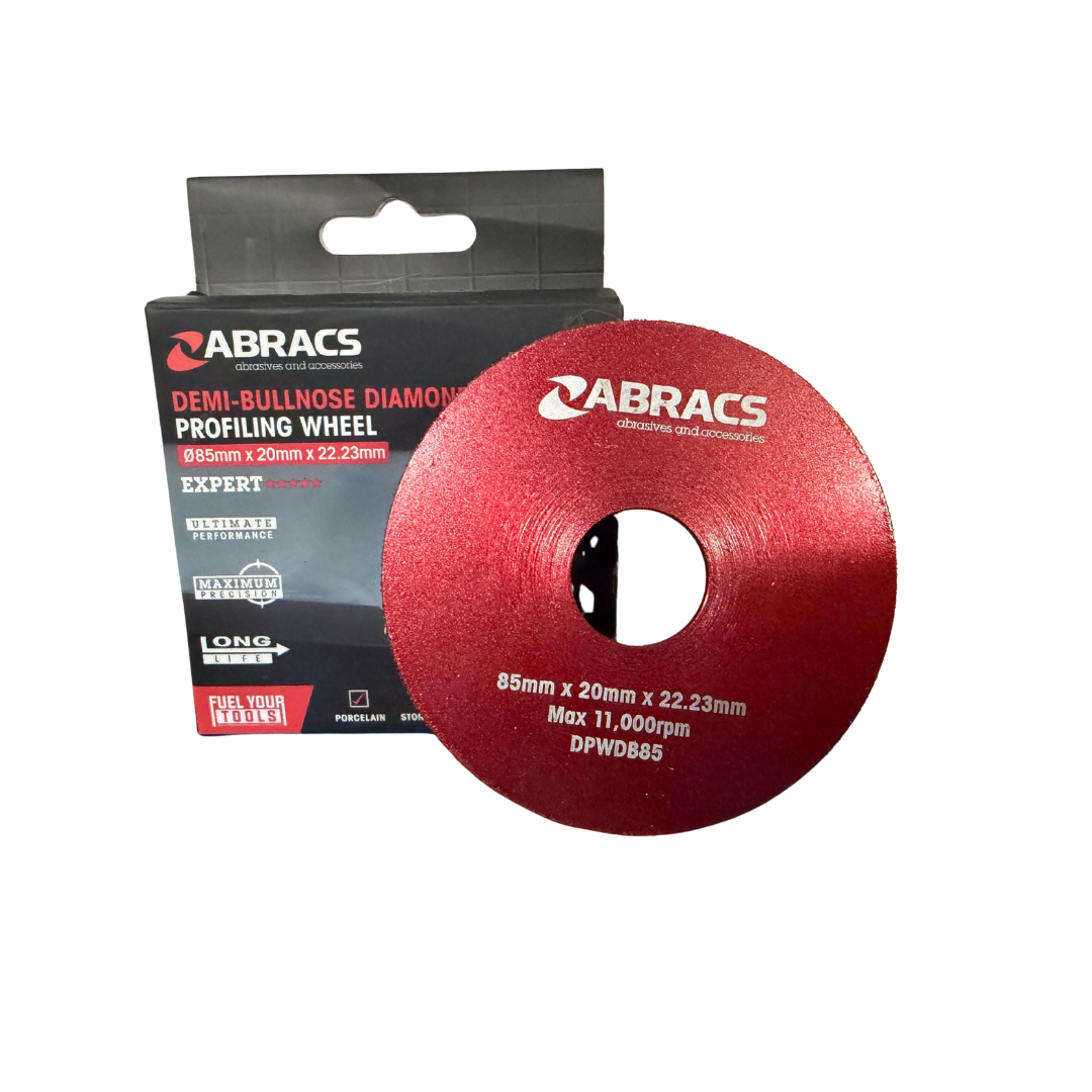ABRACS 85mm x 20mm x 22.23mm DEMI-BULLNOSE DIAMOND PROFILLING WHEEL (DPWDB85)